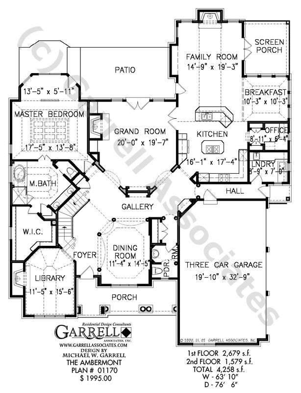 Four fireplaces grace the first floor of this Traditional style house plan. At the heart of this home the dining room and grand room share a see through fireplace. French doors open from the spacious kitchen and family room to the grand room. The luxurious master suite is crafted with a tray and coffered ceiling and complimented with a beautiful bathroom and expansive walk in closet. The second level consists of three secondary bedrooms and a TV room. We offer floor plan modifications on all of our Traditional style house plans.