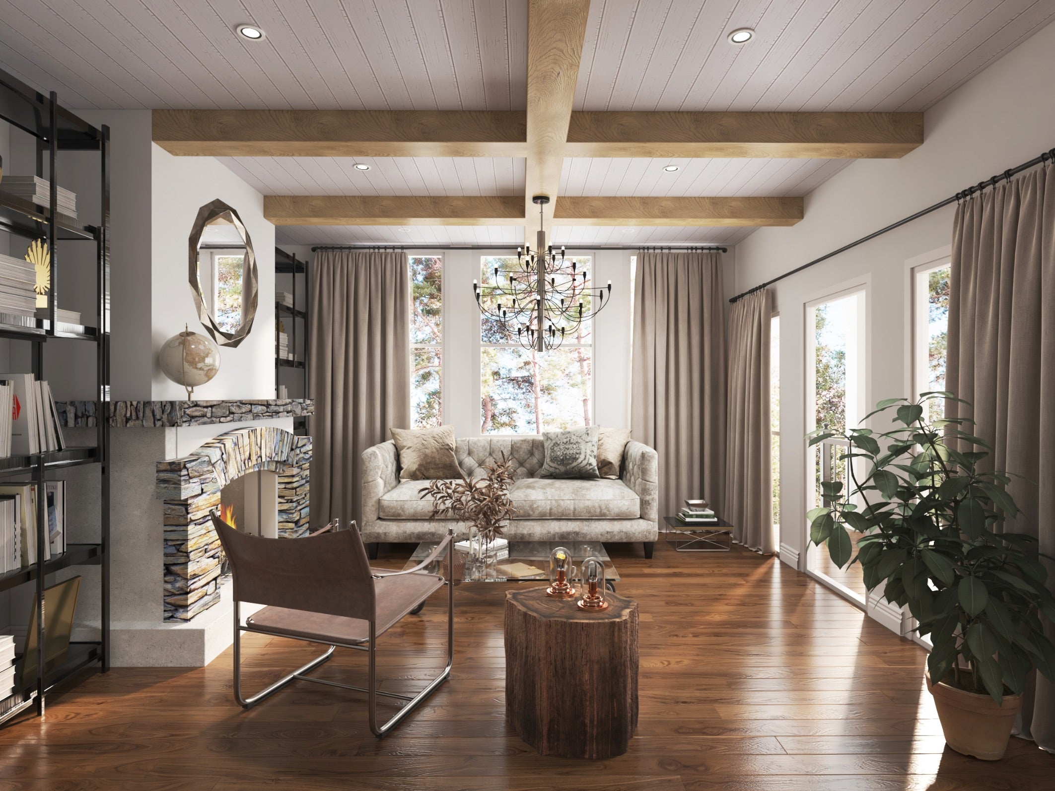 We typically calculate square footage from outside the exterior frame wall, not including features like decks, porches, patios, screened porches, verandas, fireplaces, garages, basements, attics, future space, or bonus rooms. This means a livable space that is heated and finished (with drywall, paint, and carpeting, for example).  If you need to clarify the square footage of a particular home plan, please contact us.