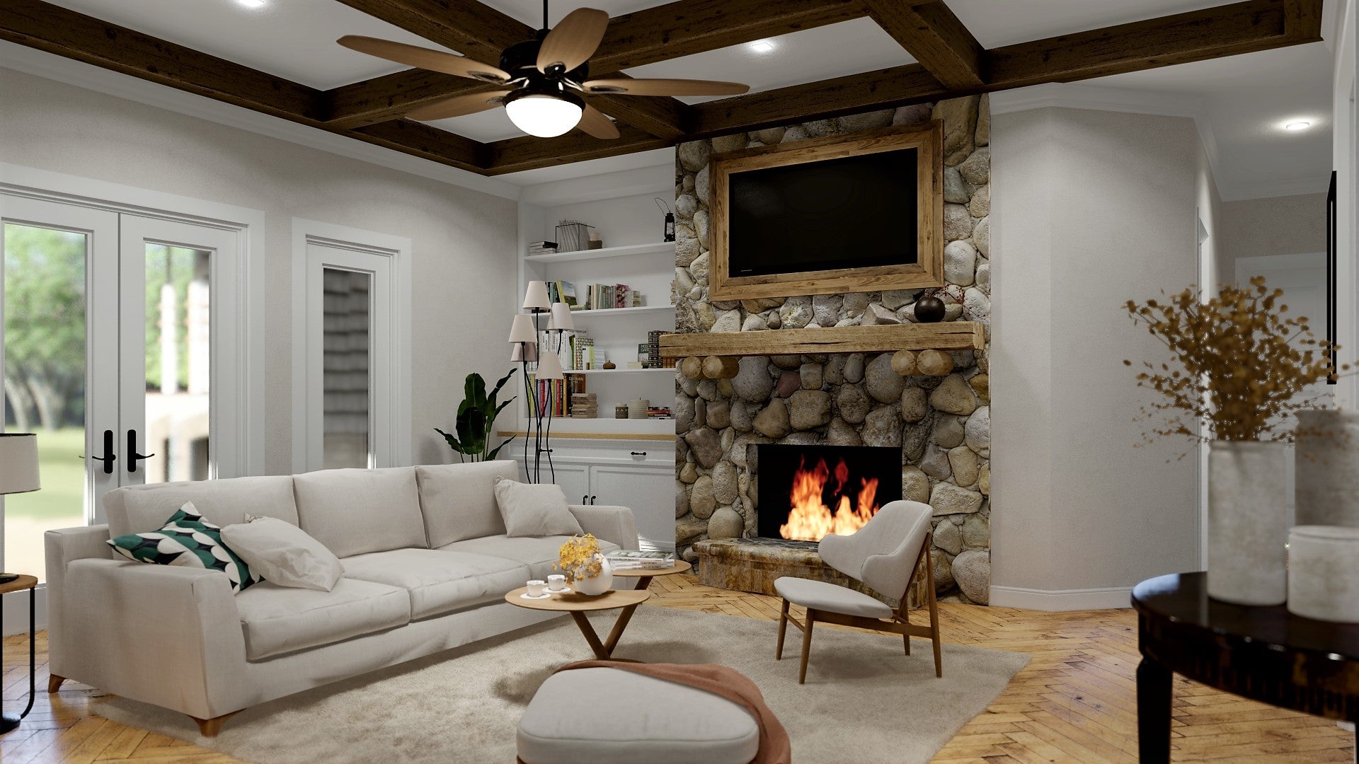 We typically calculate square footage from outside the exterior frame wall, not including features like decks, porches, patios, screened porches, verandas, fireplaces, garages, basements, attics, future space, or bonus rooms. This means a livable space that is heated and finished (with drywall, paint, and carpeting, for example). If you need to clarify the square footage of a particular home plan, please contact us.