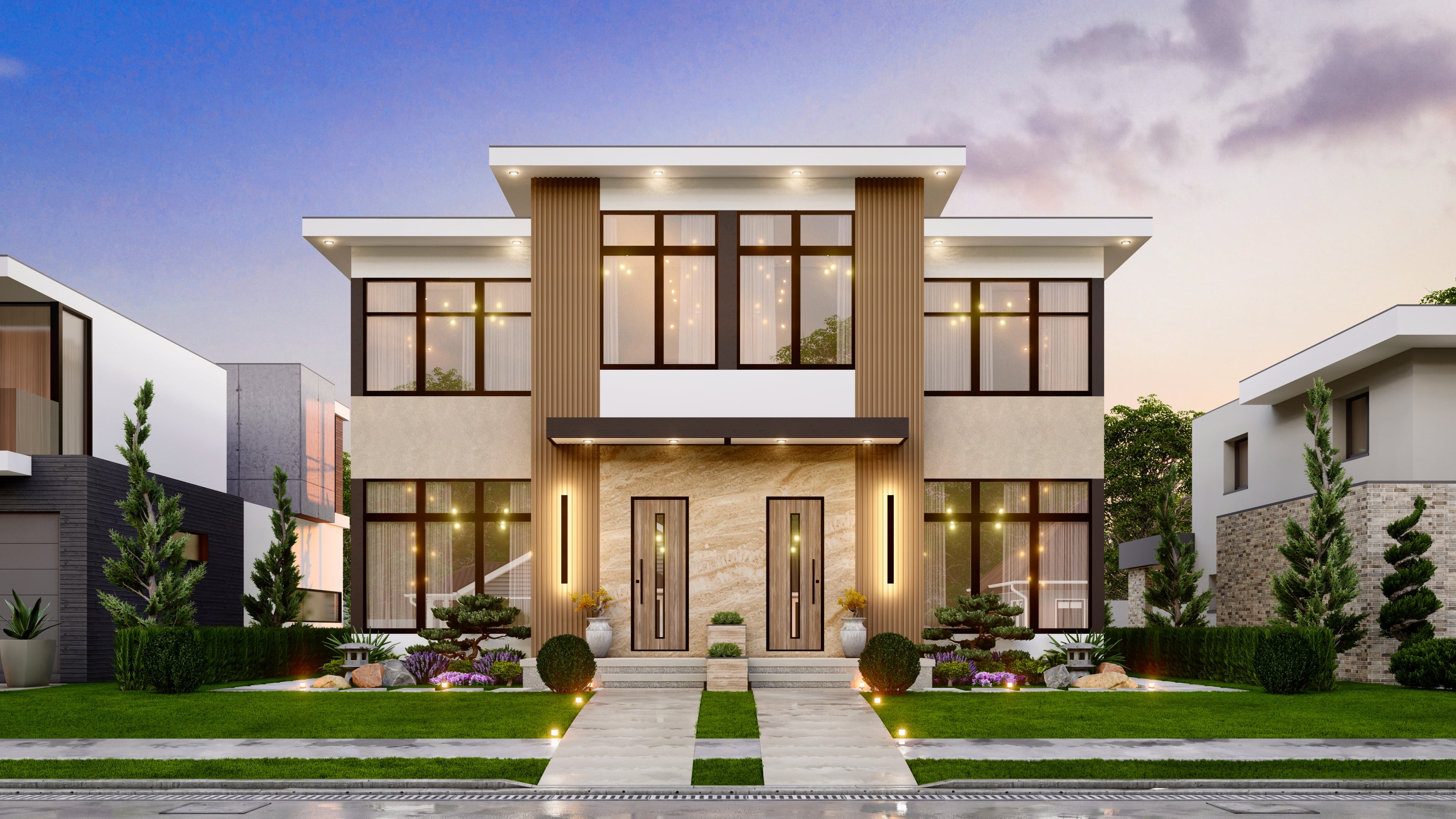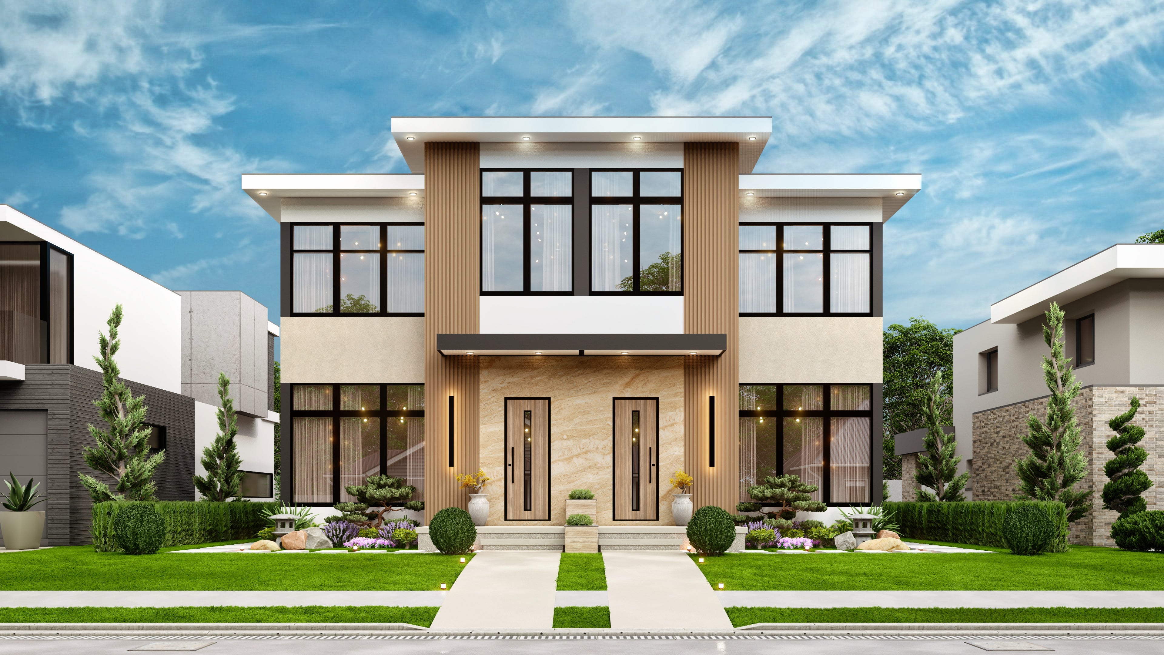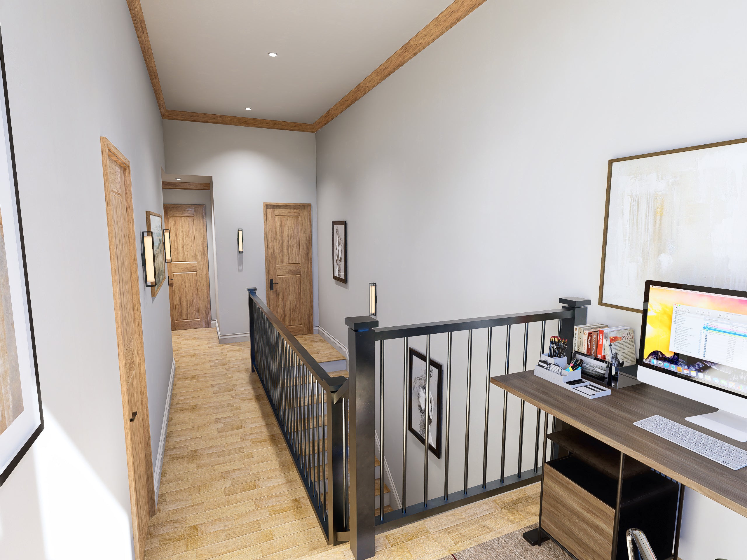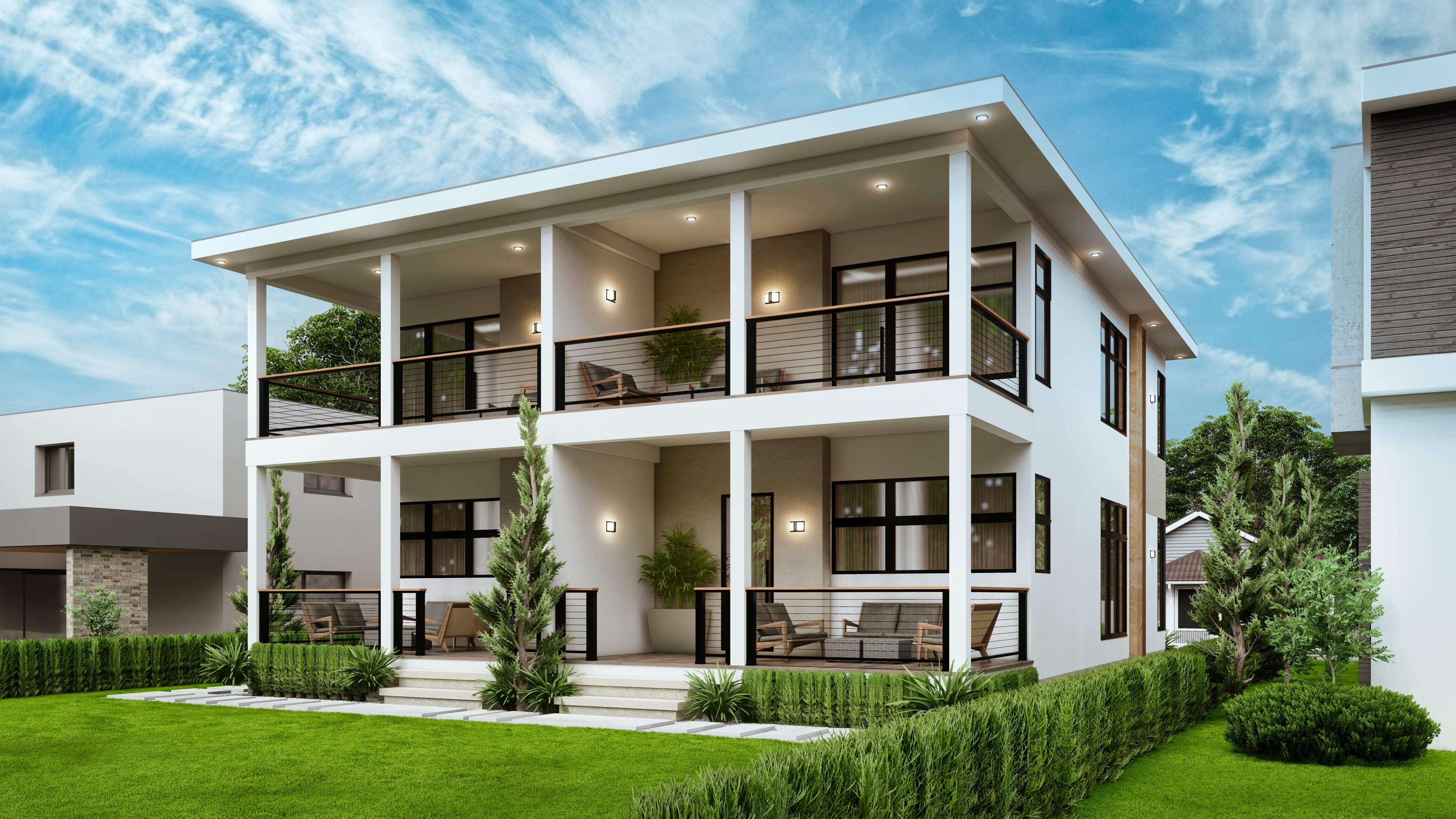 Upstairs, the 9-foot ceilings create a comfortable, airy feel across all bedrooms. The master suite features a walk-in closet and access to a private balcony, offering a relaxing retreat. Each unit is enhanced by thoughtful features like a Jack and Jill bathroom, upstairs laundry, and no shared interior walls, ensuring both privacy and functionality. Exterior highlights include vertical siding, flat rooflines, durable PVC/TPO roofing, and 2x6 exterior wall framing. With a total building width of 42'-4" and depth of 57'-0", this duplex plan is an ideal fit for narrow lots, rental investments, or owner-occupant properties.