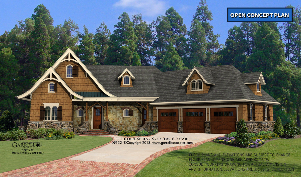 Hot Springs Cottage 3 Car | Plan 09132