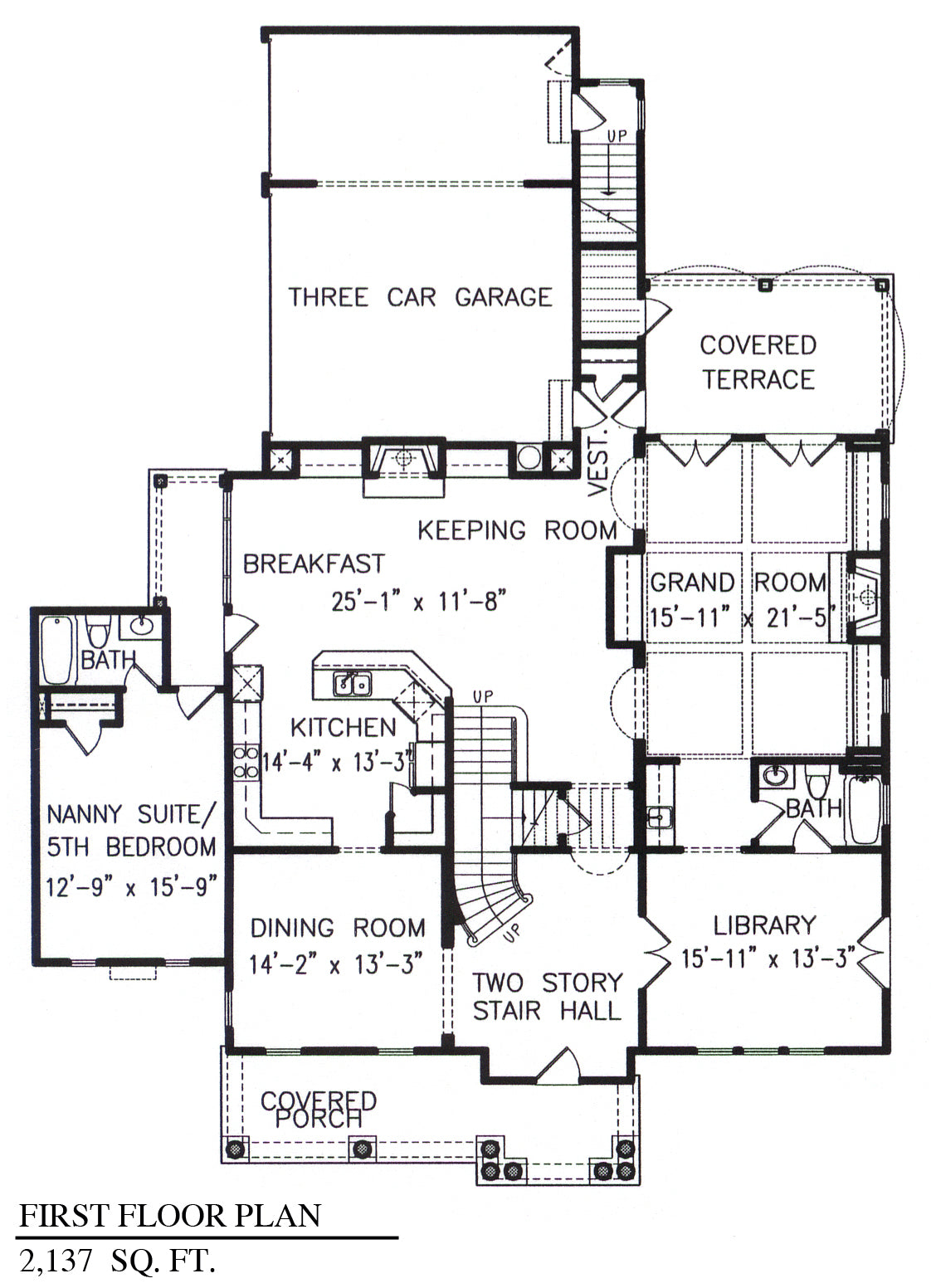 This Traditional style house plan features an open kitchen that flows to a keeping room. Graceful arched doorways lead to a stunning grand room enhanced with a beautiful coffered ceiling. French doors open from the grand room to a columned and arched covered terrace. A dining room, library and fifth bedroom complete the first floor. The second floor master suite is highlighted with a master sitting area accented with a fireplace, lavish bath and over sized walk in closet provide the ultimate in luxurious living. Two additional bedrooms and unfinished flex space closeout this second level. We offer floor plan modifications on all of our Traditional style house plan designs. If you have a question about any of our house plans, call us at 1 (888) 814 1494.