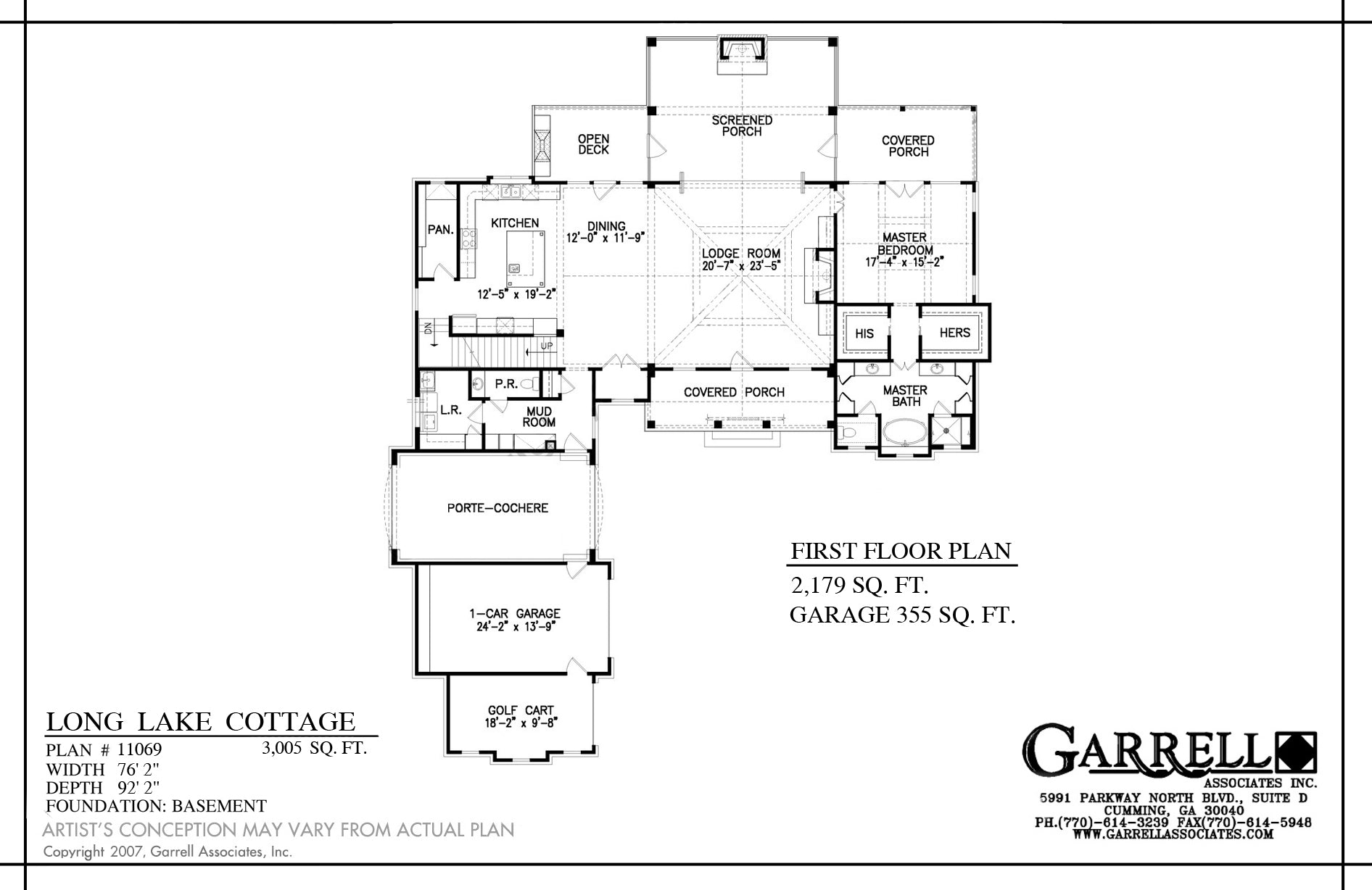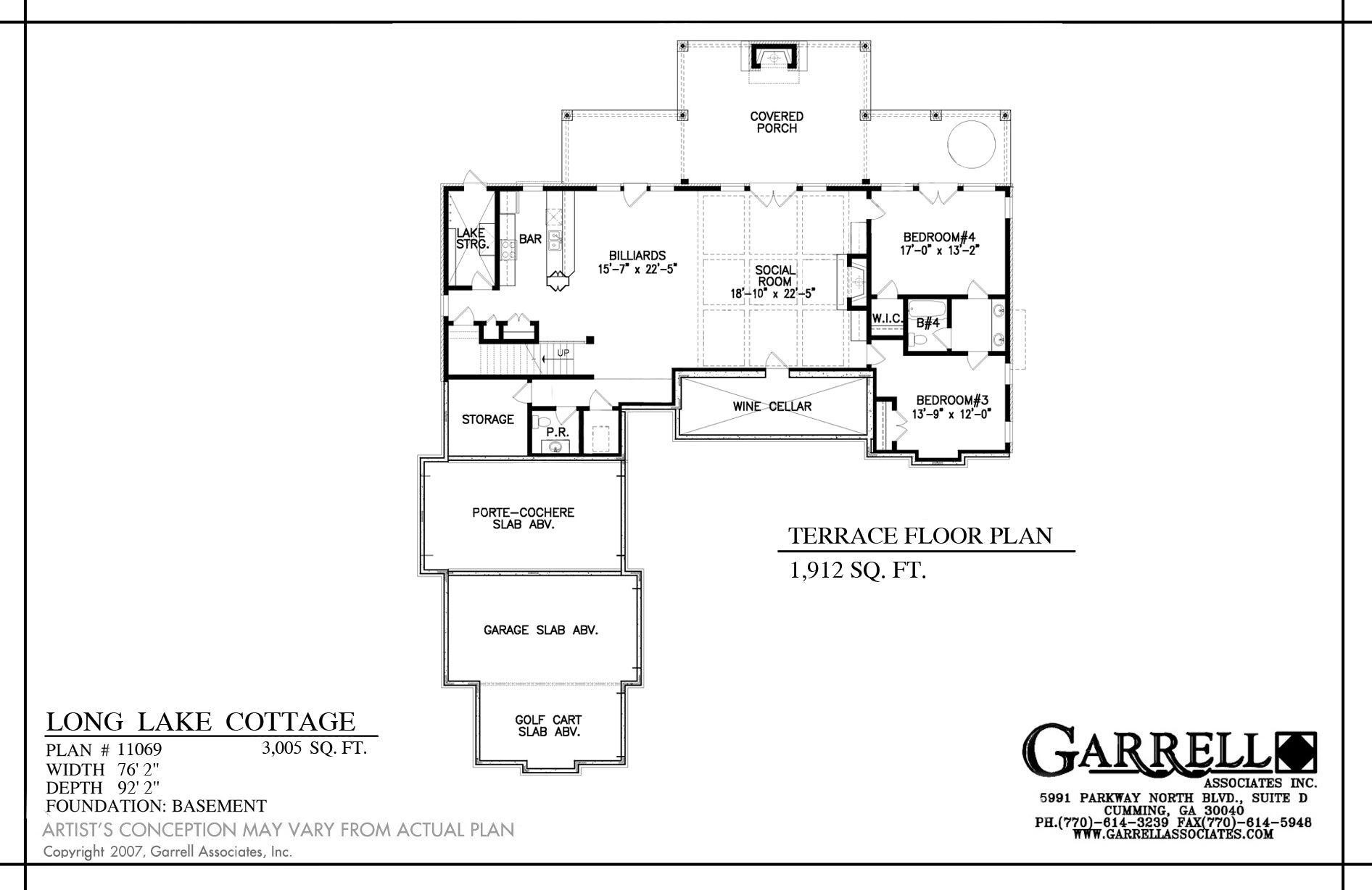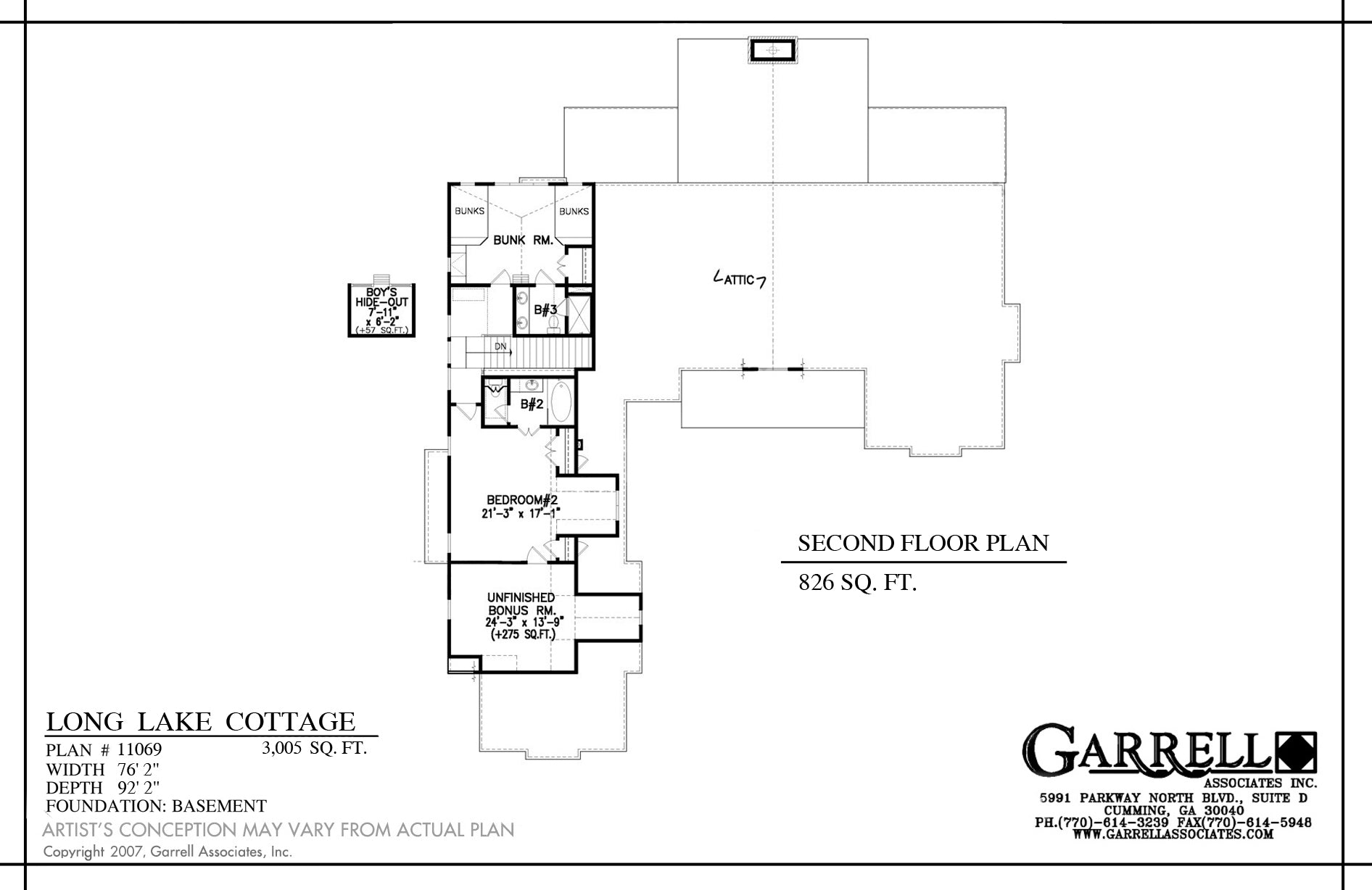 The Long Lake Cottage craftsman house plan boasts an open floor plan with a spacious great room that features a cozy fireplace and exposed beams, creating a warm and inviting atmosphere. The main level of the home offers a master suite with a spa-like bathroom and access to a covered porch, providing a private oasis to relax and unwind. Upstairs, there are two additional bedrooms and a loft area that overlooks the great room below. The exterior of the home showcases a charming mix of stone, shingles, and siding, making it a beautiful addition to any landscape.