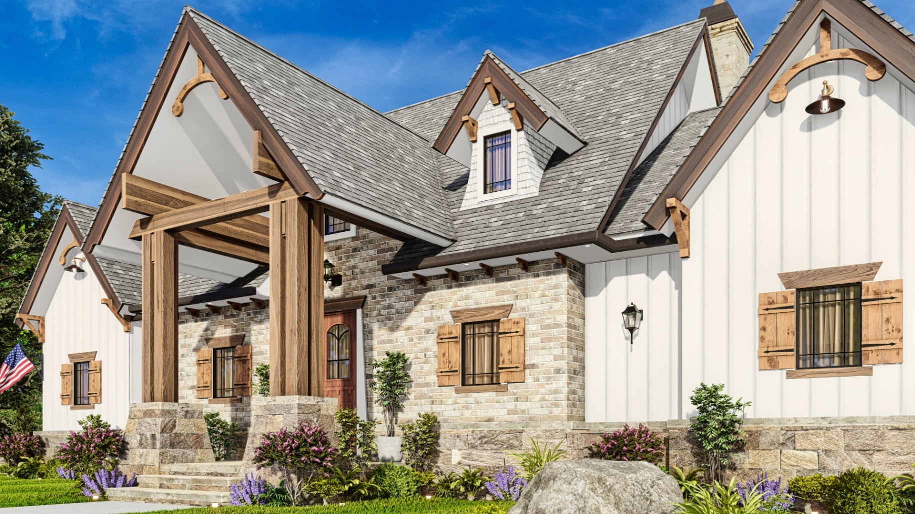 This beautiful cottage style house plan is designed to evoke a cozy and charming atmosphere inspired by the high country or mountain regions. The plan aims to create a warm and welcoming ambiance with a layout that promotes a sense of intimacy and comfort, making it ideal for individuals or families seeking a cozy retreat. The plan features 2 bed and 2 baths and include a spacious rear covered porch and patio slab with drive thru garage.